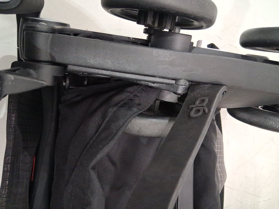 Please note the stroller shows signs of previous use with dusting around the wheels and fabric and some smudging, see photos.