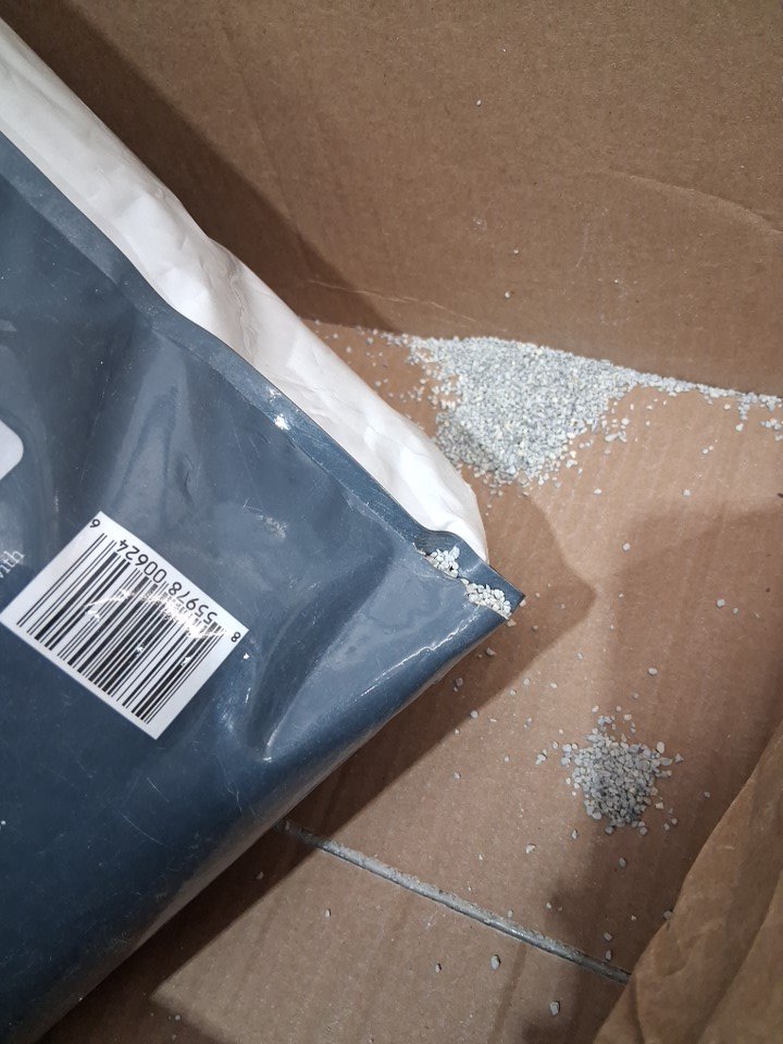 item has small holes in the sealed bag from shipping which leaked some litter out.
