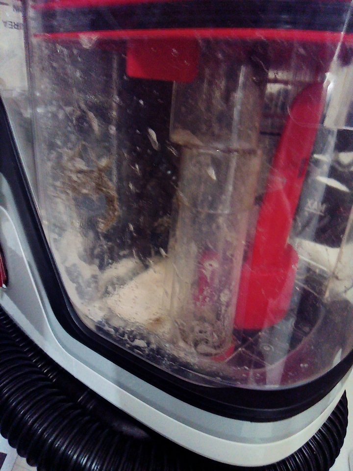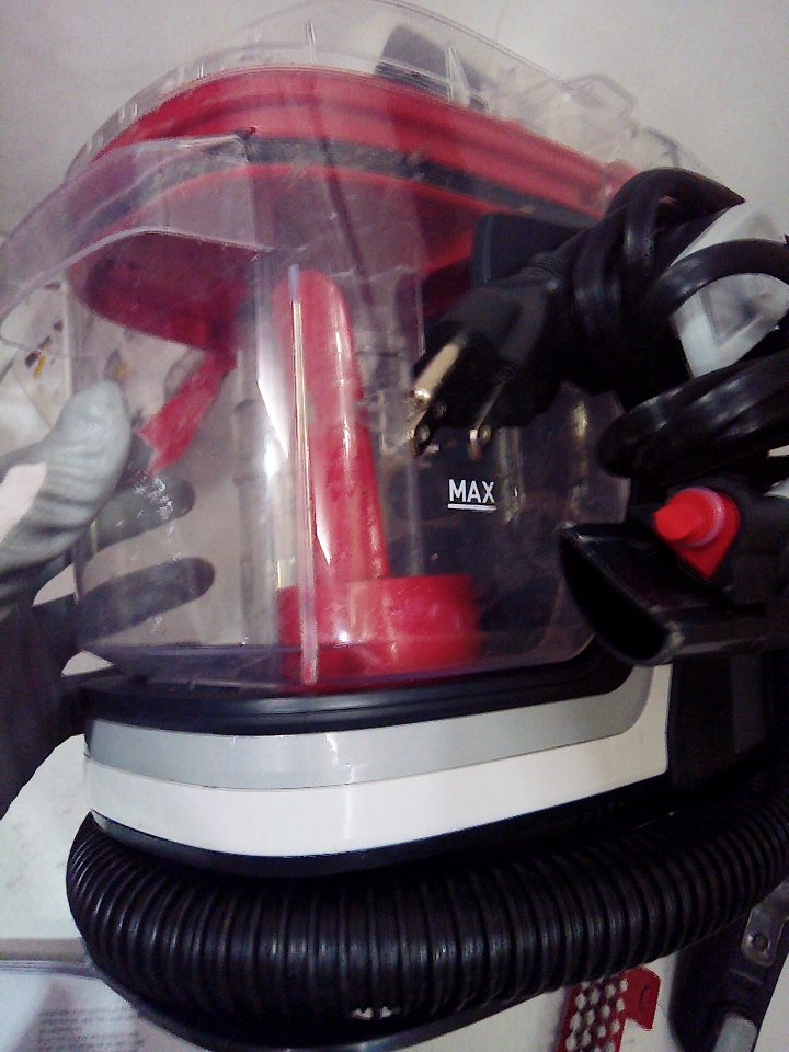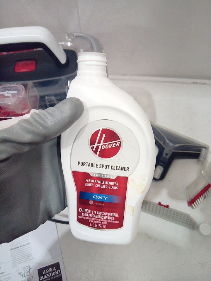 There are light markings and water/pet hair inside the tank. Tested for power. The bottle of cleaning solution that is included is unsealed with most of the liquid missing. (SEE PHOTOS)