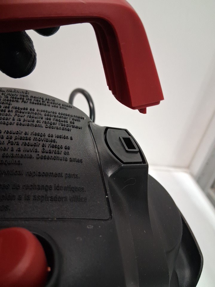Item has light dirt/dust on filter cover from prior use (see photo) Top carry handle is loose on one side and pops out - Could be glued into place (see photo)
