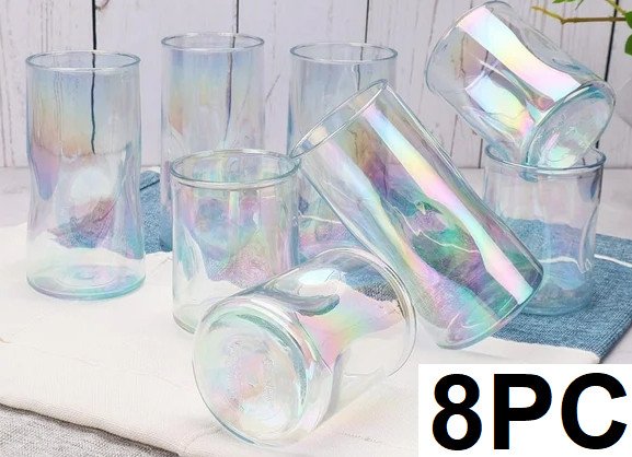 8pc better homes & gardens acrylic highball & lowball glass set - iridescent (model: bbn661-s8)