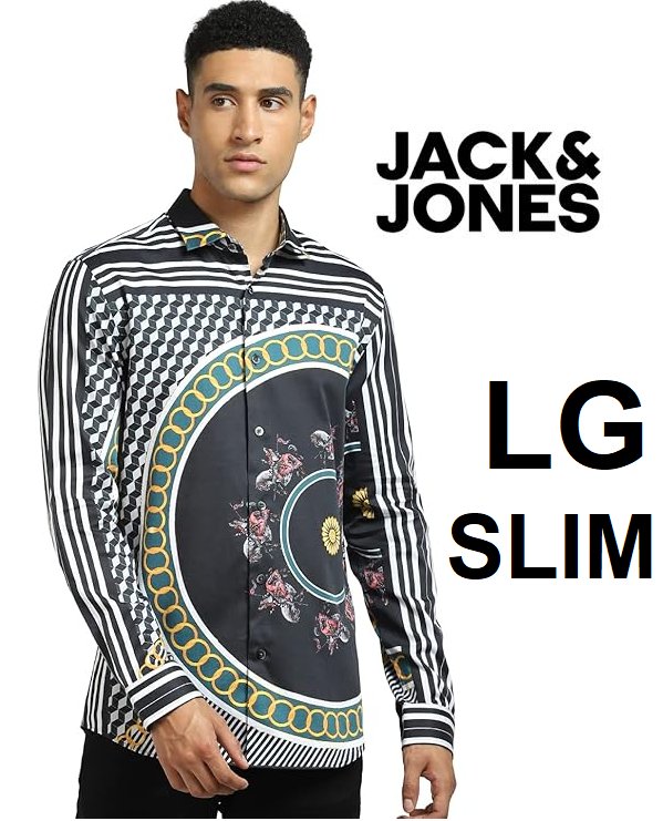 MEN'S jack & jones graphic printed long sleeve slim fit collared shirt - large - multi-colour