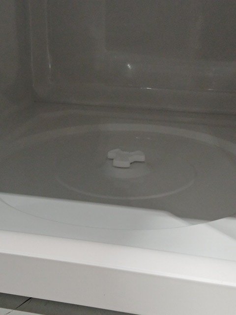 There are some scuff marks on the product and the microwave plate is missing. Tested for power.