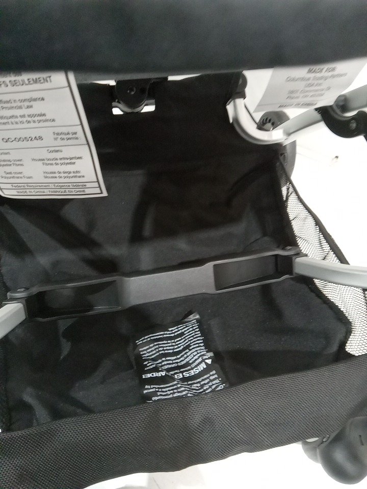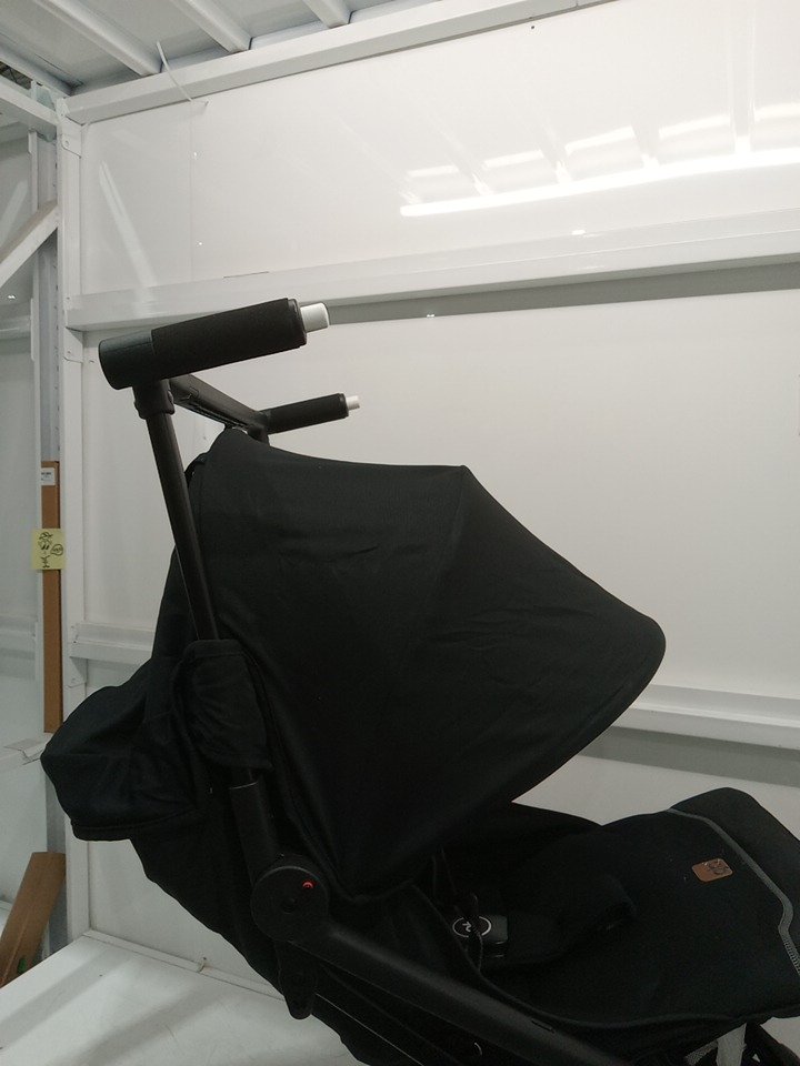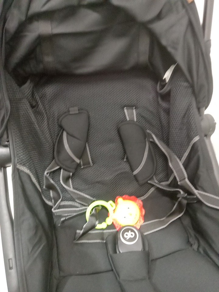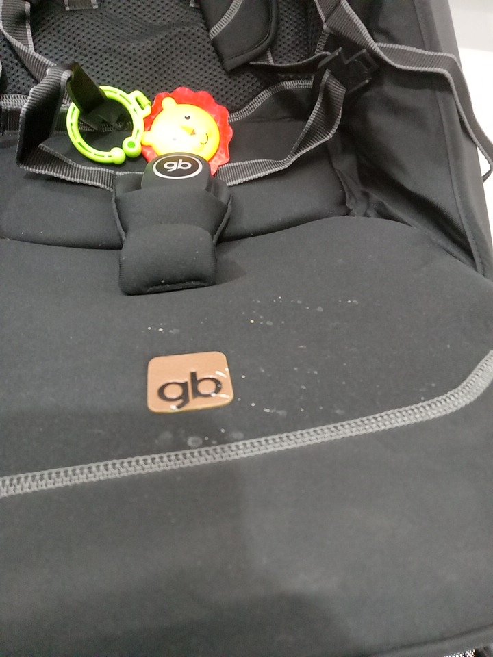 There are dirt stains on the seat and dirt residue on the wheels due to previous use. There are scratch marks on the handle. (Please see photos)