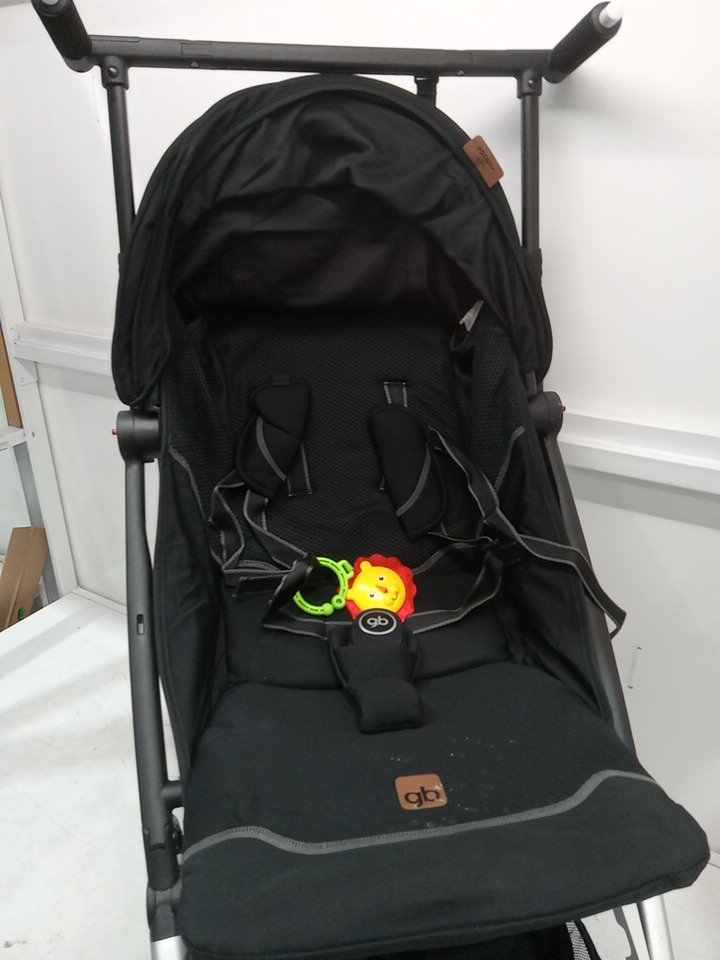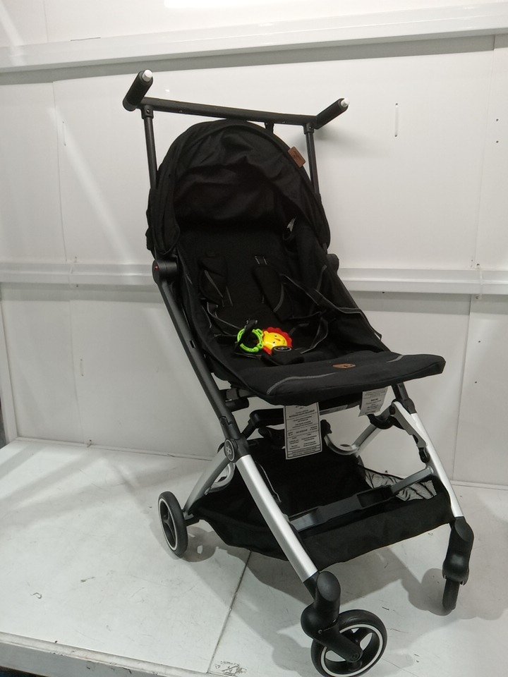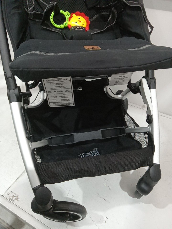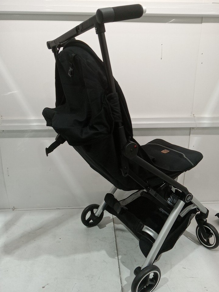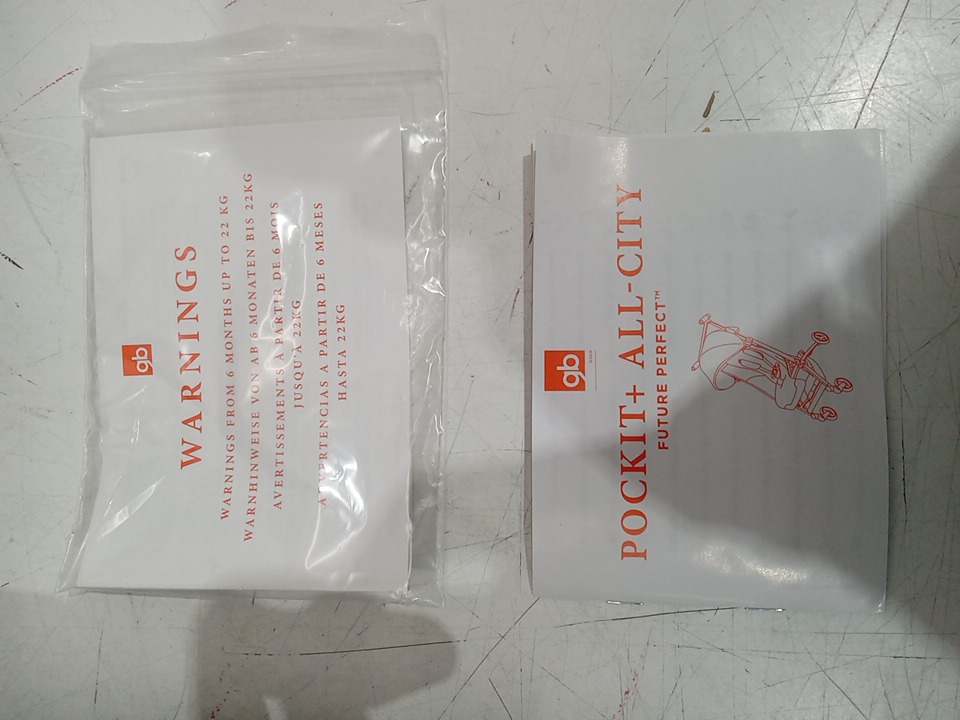 There are dirt stains on the seat and dirt residue on the wheels due to previous use. There are scratch marks on the handle. (Please see photos)