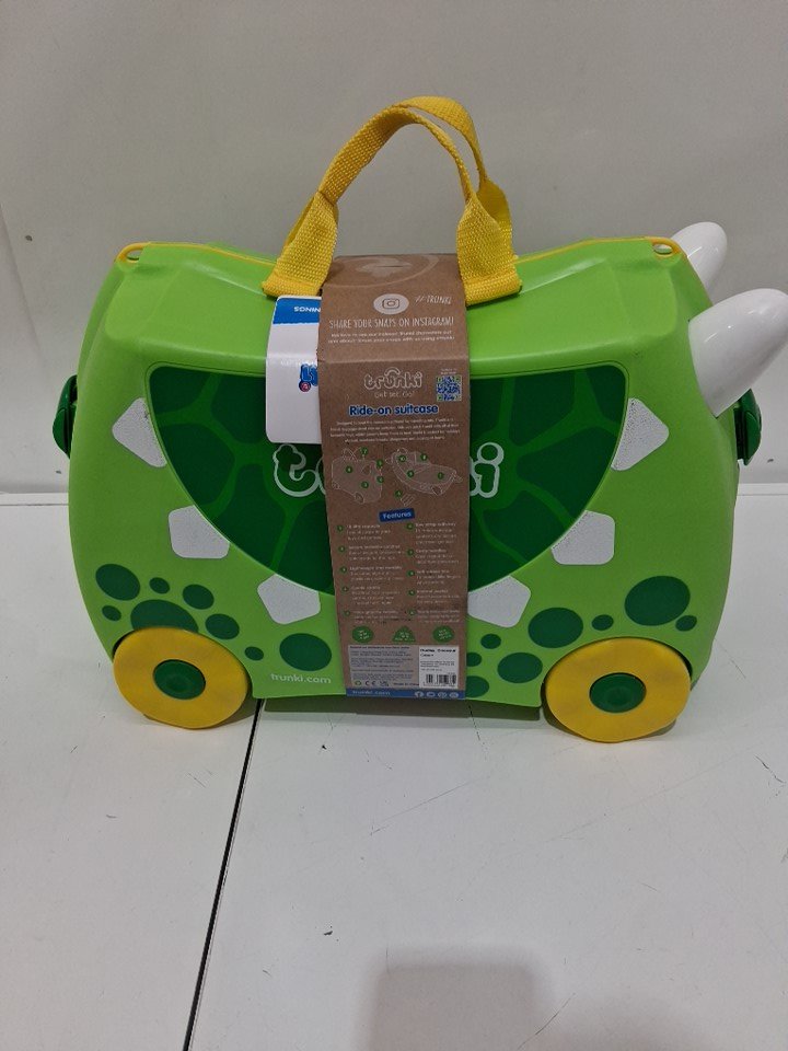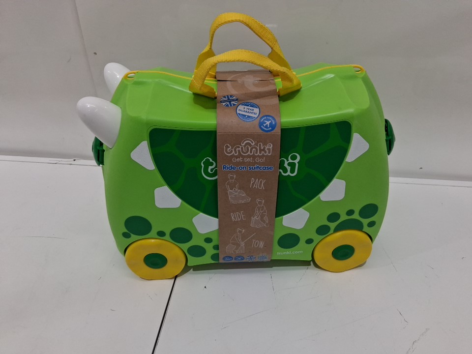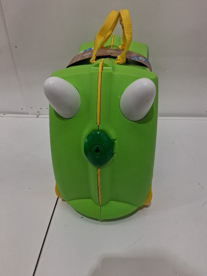 kid's TRUNKI plastic RIDE-ON SUITCASE - Dudley Dinosaur - green