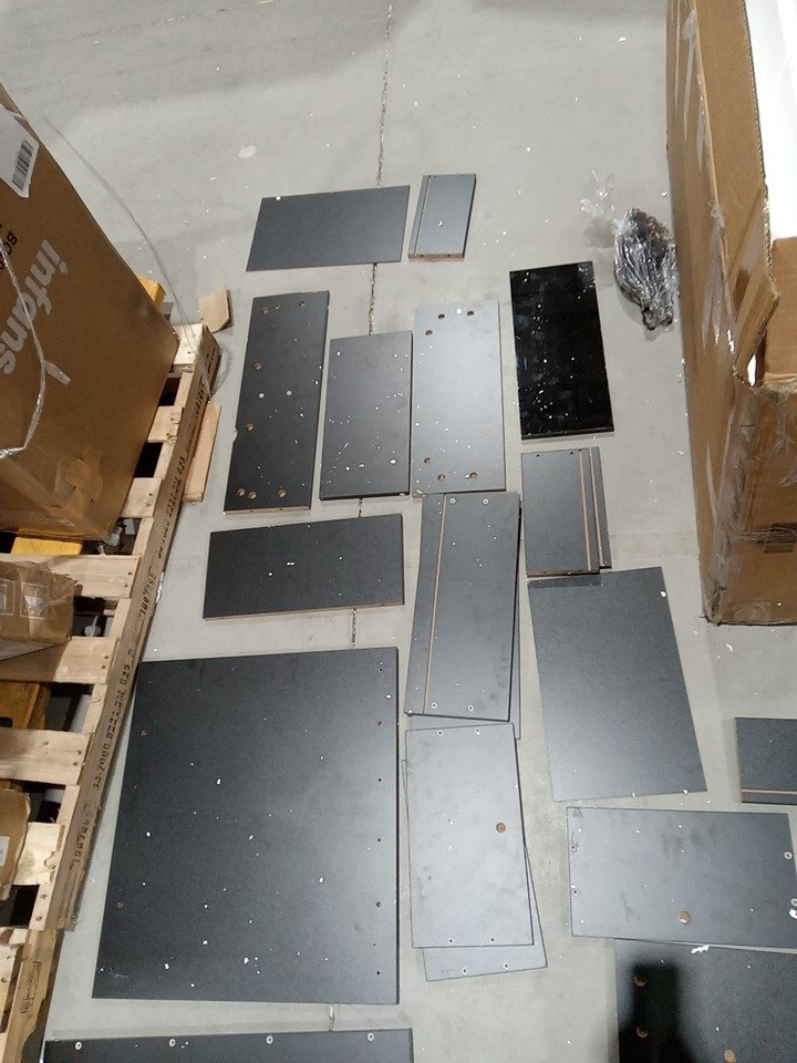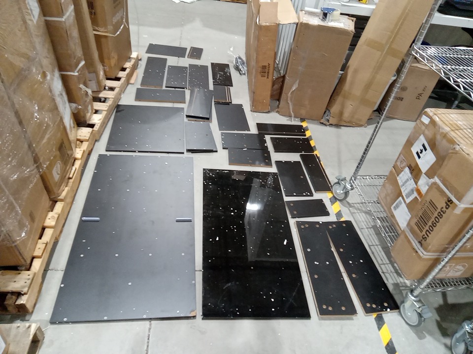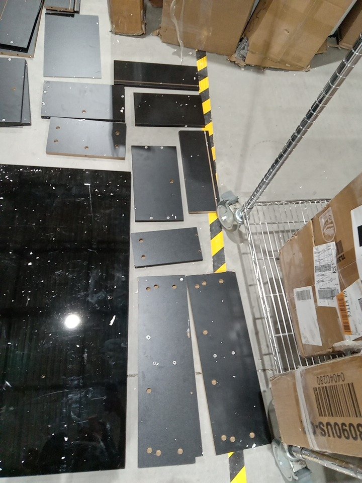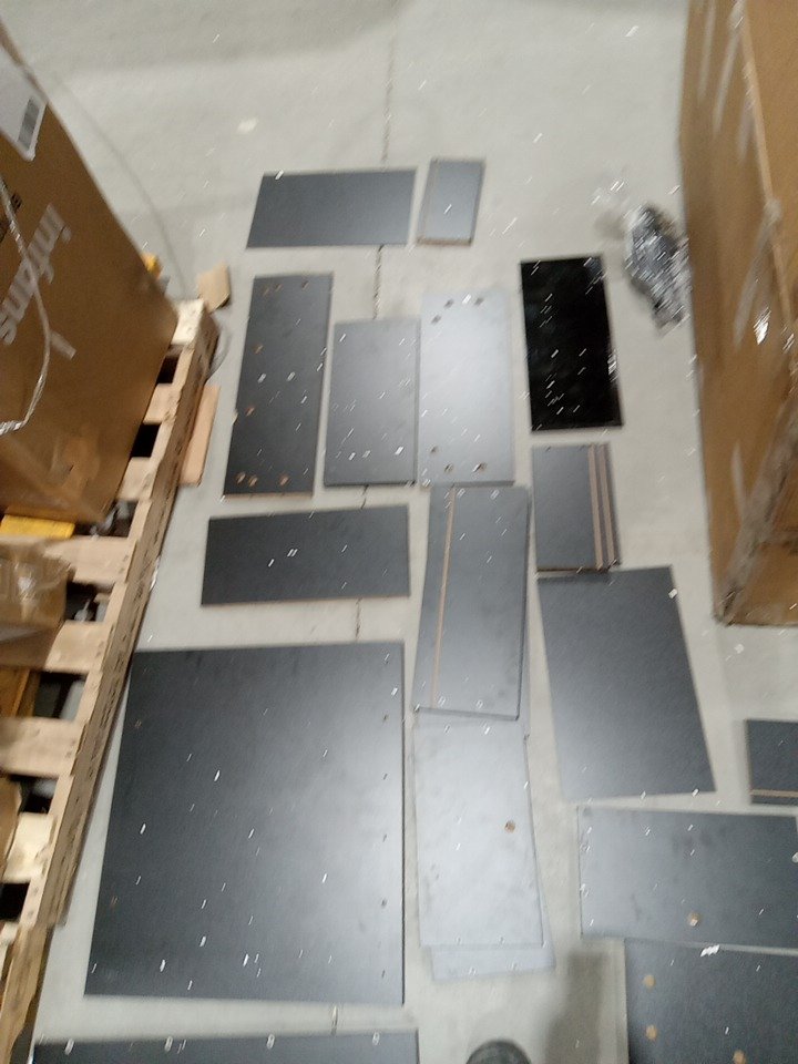 Upon inspection we have found scratches, scuffs, fraying marks, blemishes and some dust on the wood pars of this item, this seems to be due to shipping and handling and not previous assembly as their are no marks. all parts for assembly are present. see photos below