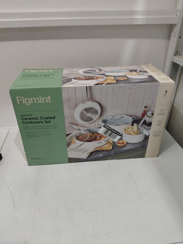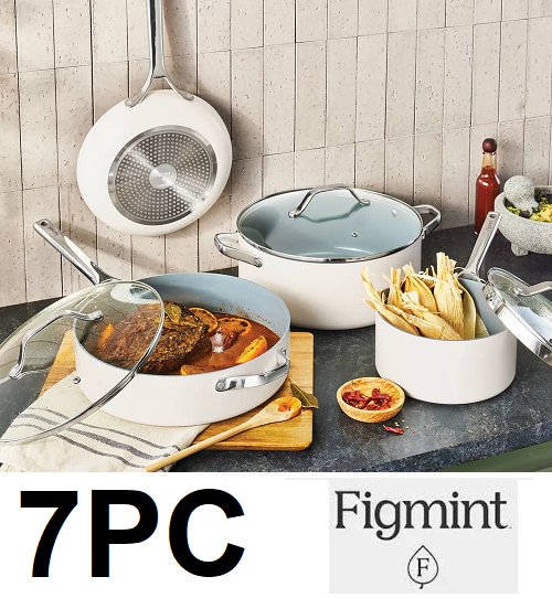 7PC FIGMINT non stick ceramic cookware set - white/silver