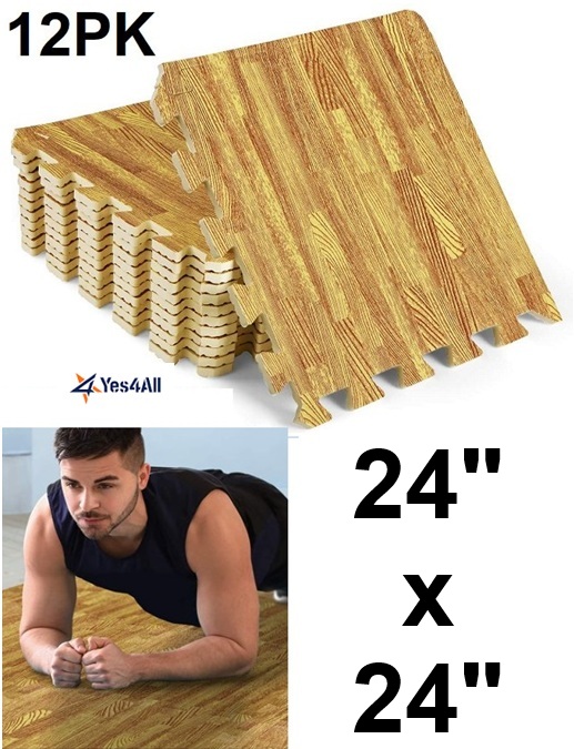 12PK YES4ALL INTERLOCKING EXERCISE FOAM MATS, (24" X 24") LIGHT OAK WOOD (MODEL: fnuj)