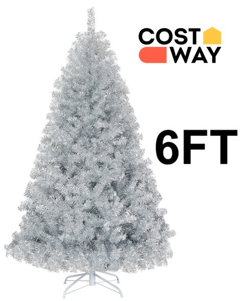 Costway Artificial Silver Tinsel Christmas Tree with Metal Stand - 6ft - silver (MODEL: cm22826)