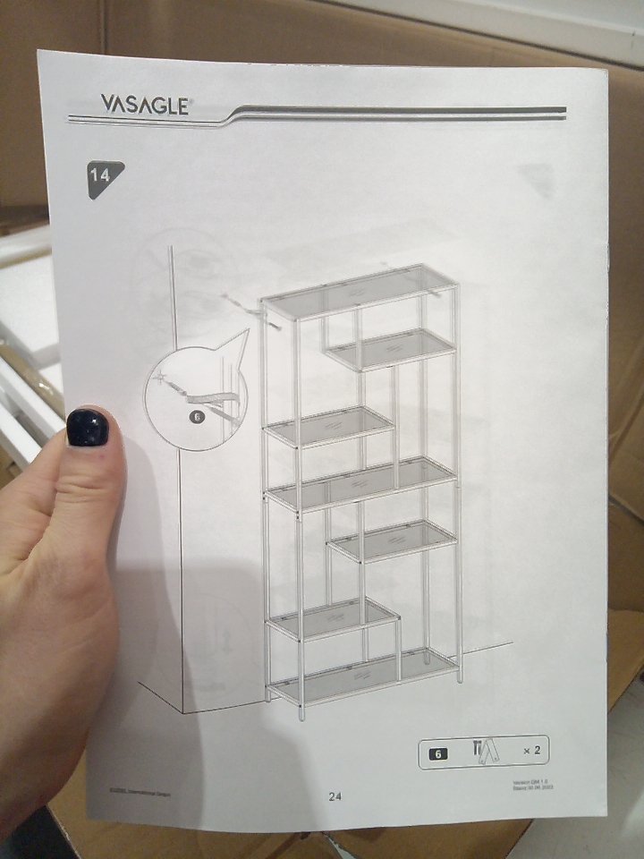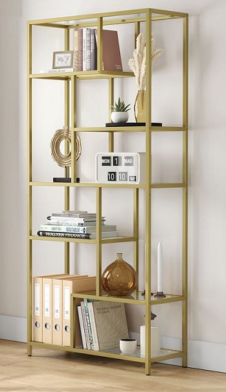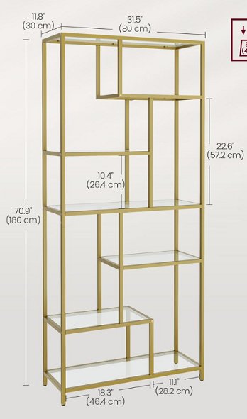 VASAGLE 6-Tier Tall Bookshelf with Tempered Glass Shelves - 71" X 31.5" - Metallic Gold (MODEL:LGT502)