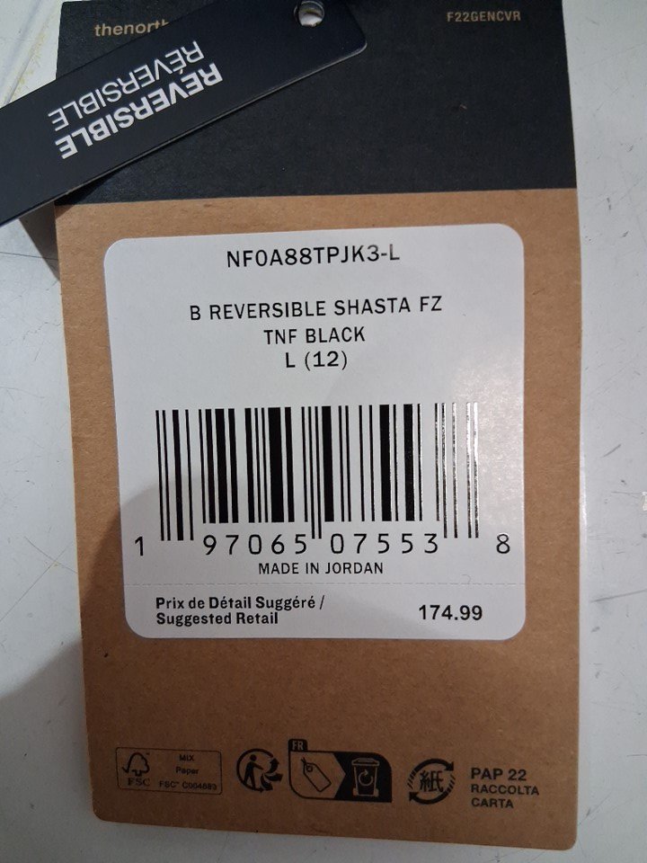 Boys The North Face reversible shasta full zip jacket with hood - Large (12) - Black (Style: nf0a88tpjk3-l)