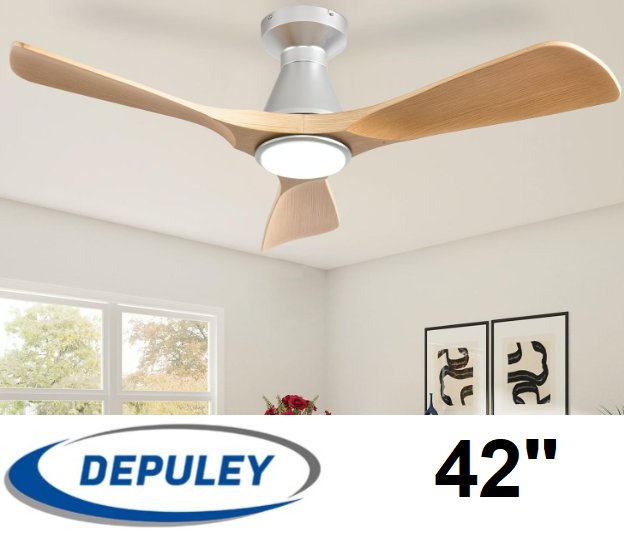 Depuley Wood 3 Blade Flush Mount Ceiling Fan with Light - 42" - 6 speed - light wood - (model:ws-fpz186-18b-ne)
