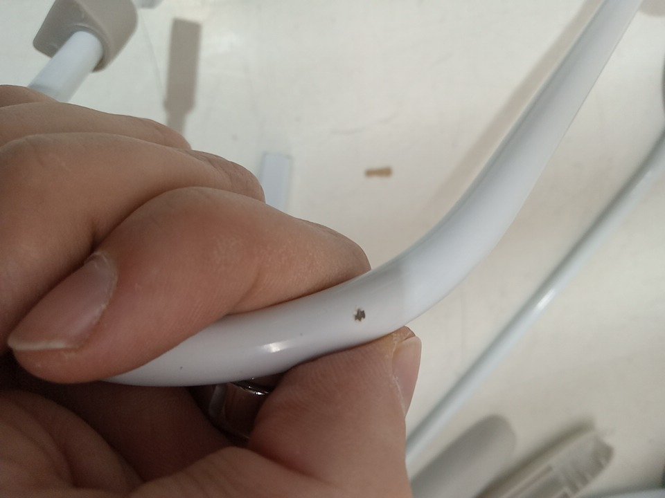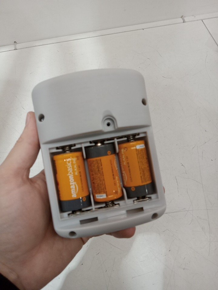 Chip in the paint. Likely from shipping/handling or a manufacture defect. Tested for power only, batteries not included.