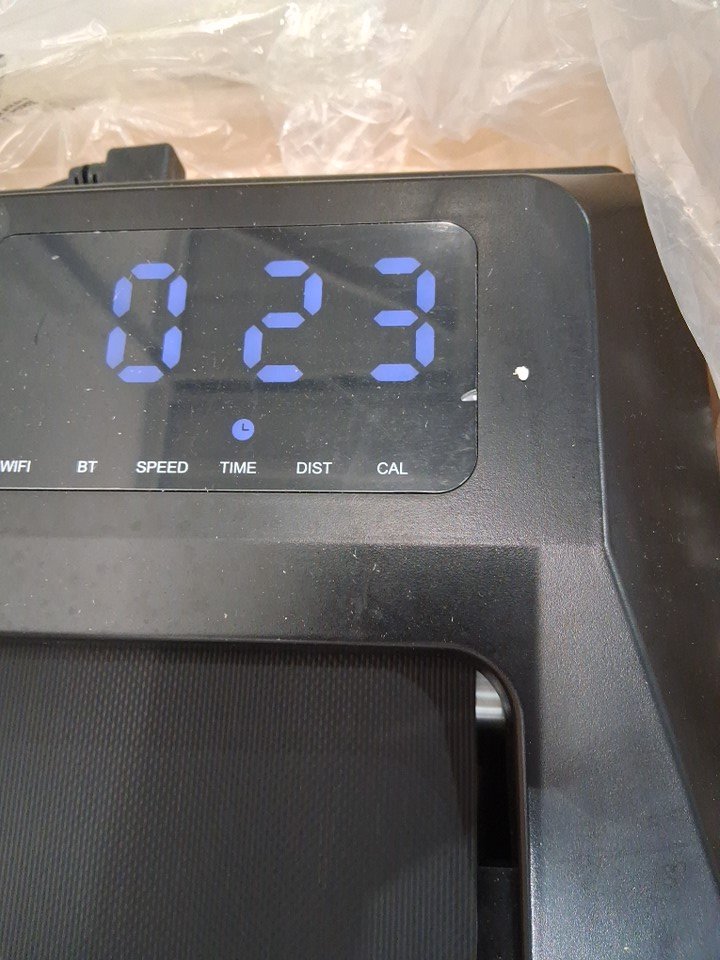 There are some dust marks/scuffs from the foam packaging on the tread due to shipping, but otherwise no visible issues or damage, and all functions appear normal - see photos.