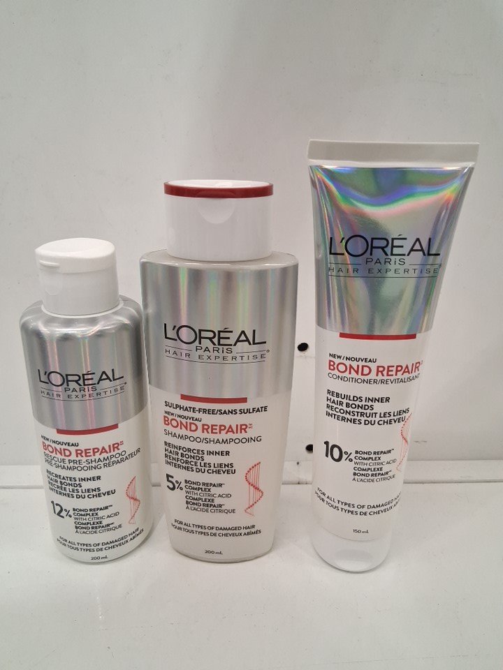 3pc l'oreal bond repair set - pre-shampoo, shampoo, and conditioner - 200ml, 200ml, 150ml