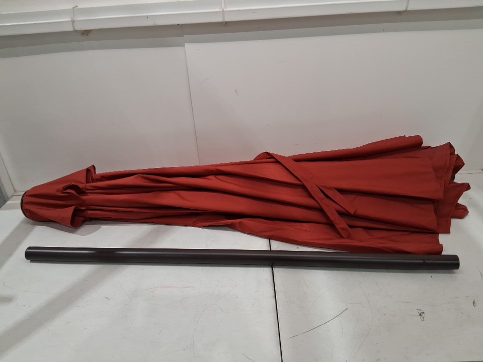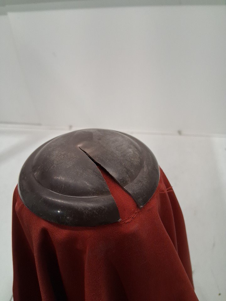 scratches on pole from use, umbrella top plastic cover is cracked and missing a small piece, doesnt appear to affect use.