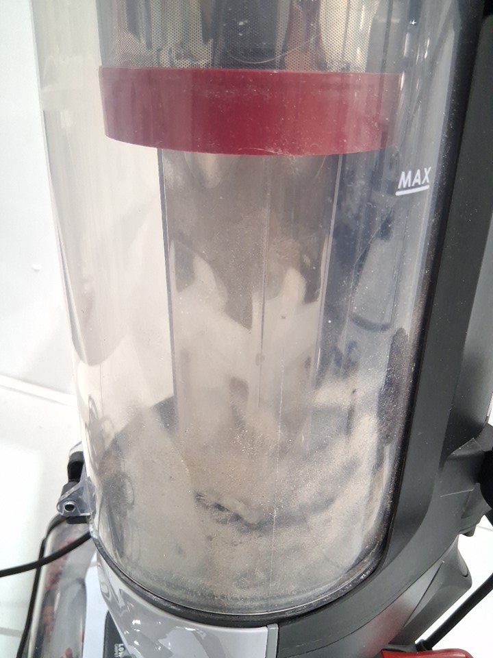 Tested for power Dirt and dust inside the canister For some reason when turned on for testing, vacuum powers on and appears to work, but the roller on the head did not spin either upright unfolded