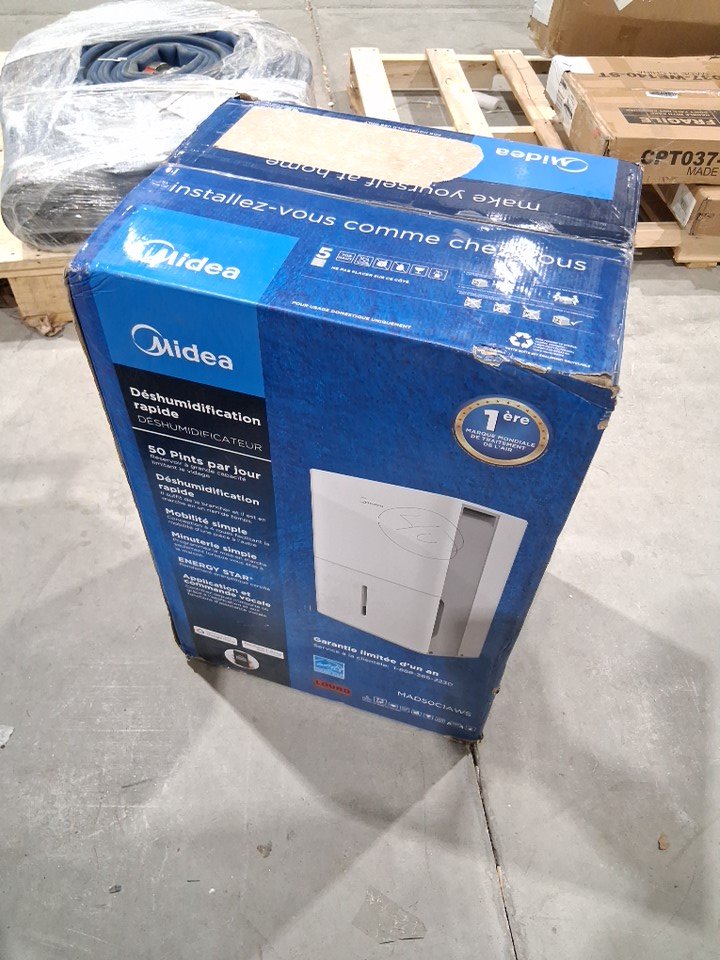 MIDEA EASYDRY DEHUMIDIFIER WITH AUTO SHUT-OFF - 4500sq.ft coverage - removes 23.5l/day - 115V - white (MODEL: MAD50C1AWS)