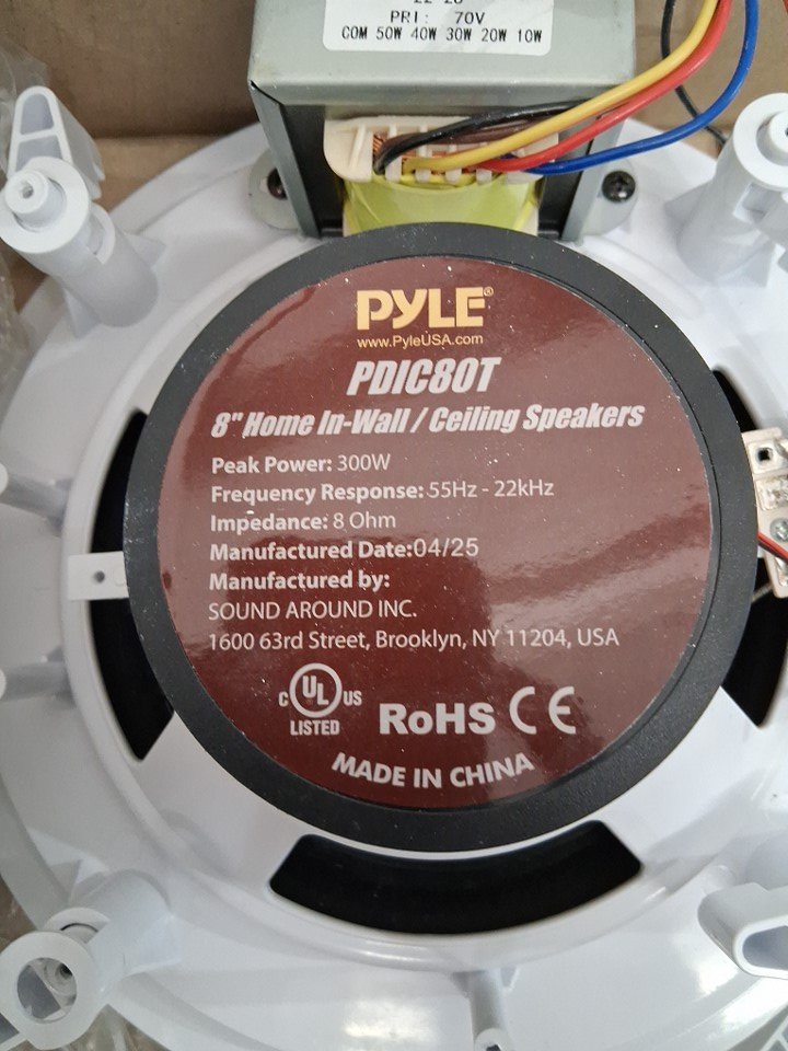 2pk pyle flush design 2-Way Midbass Woofer Speaker with 1” Titanium Dome Tweeter - 55Hz-22kHz - 300w - 8" - white (model: PDIC80T)