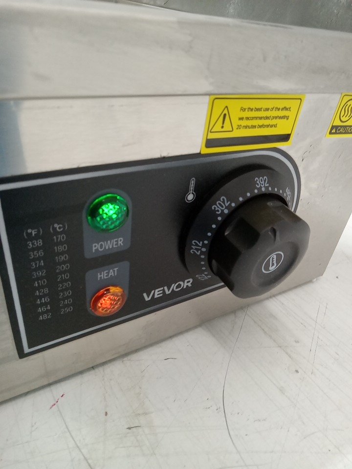 There are oil stains on the top of the griddle due to previous use. Tested for power and heat only. (Please see photos)