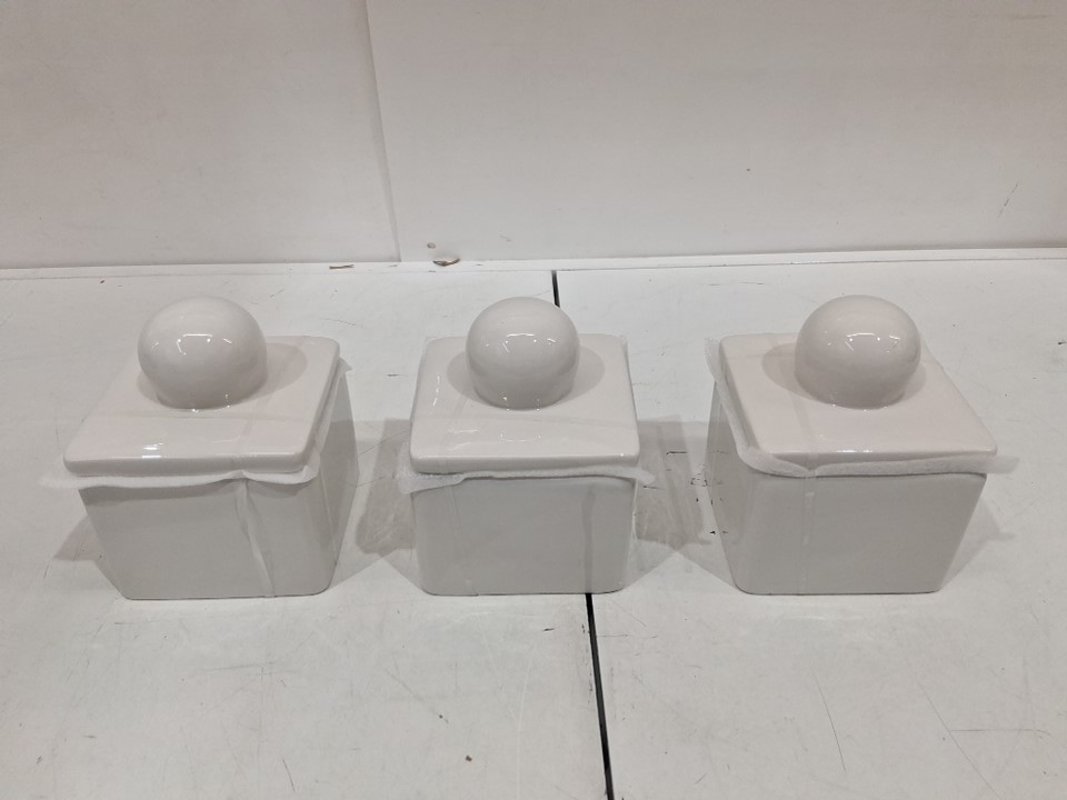 3PK Bullseye's Playground SQUARE SHAPED Decorative Marble Canister - WHITE