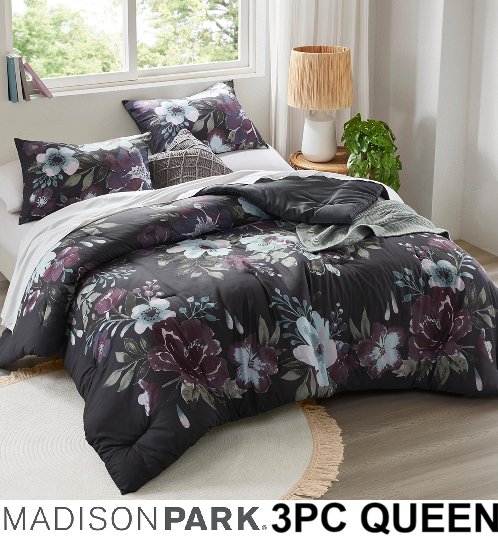 3PC MADISON PARK COMFORTER SET WITH PILLOW CASES - FULL/QUEEN - WATERCOLOR FLORAL (STYLE: MP10-8490)