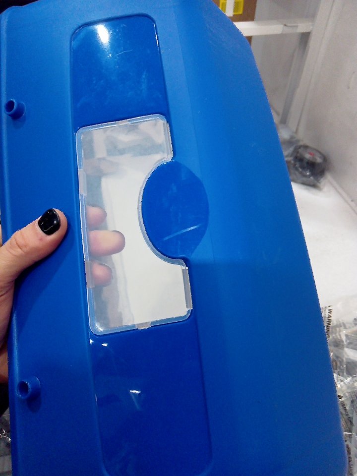 There are some faint markings on the grill cover piece. (SEE PHOTOS)