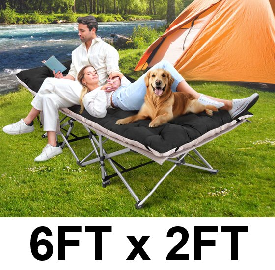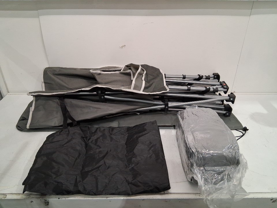 FOLDING PORTABLE CAMPING COT WITH mattress - 6ft x 2ft - grey