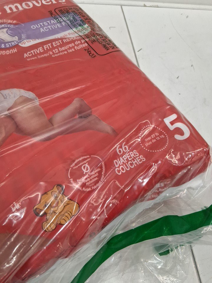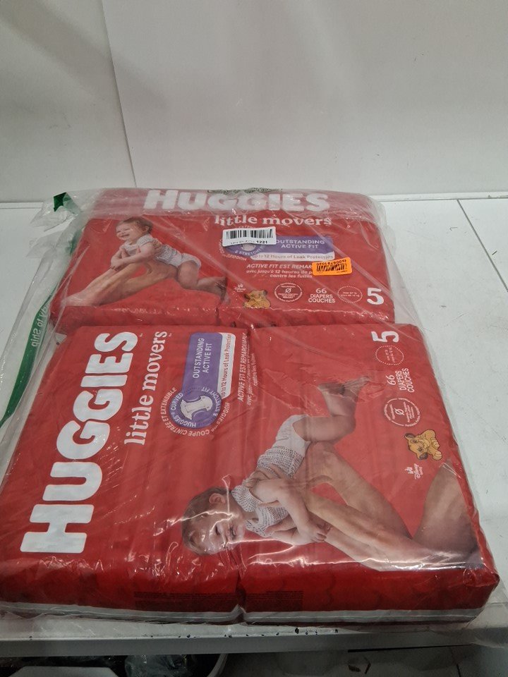 x2 (66PK) HUGGIES LITTLE MOVERS DIAPERS - SIZE 5 - DISNEY BABY LION KING (MODEL: 56316)