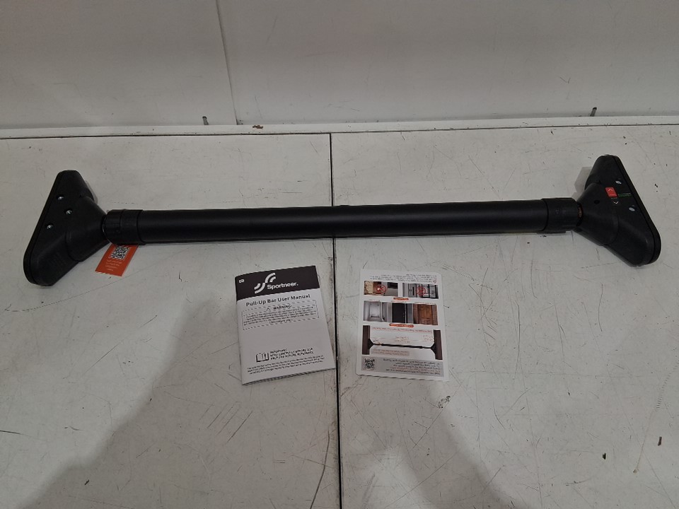 SPORTNEER ADJUSTABLE WIDTH LOCKING MECHANISM NO SCREWS AT HOME PULL UP BAR - 29.5" - 37" 400LBS MAX - BLACK/ORANGE - (MODEL: Y22-82000-90)