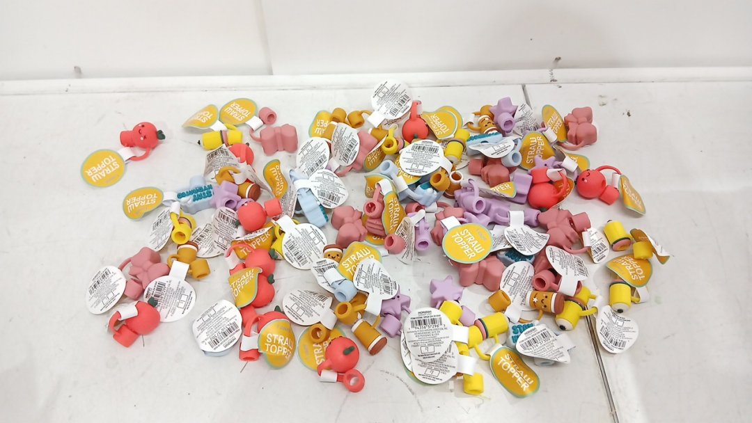 APPROX. 70PK DECORATIVE SILICONE STRAW TOPPERS - ASSORTED STYLES