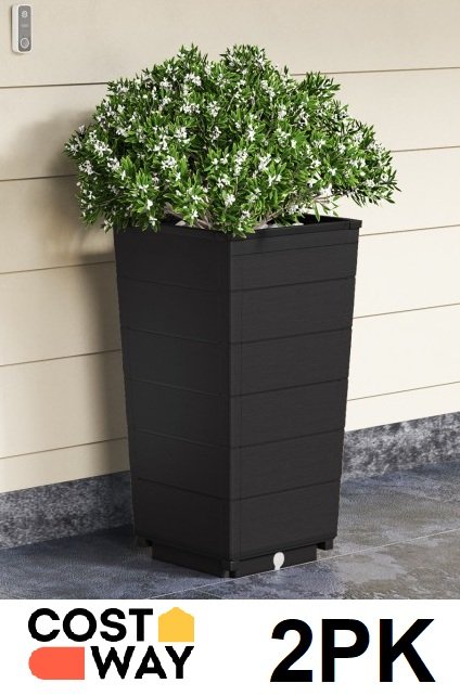 2pk costway modern self watering flower planters - 23" x 13" x 13" - black (model: gt4295bk-2)
