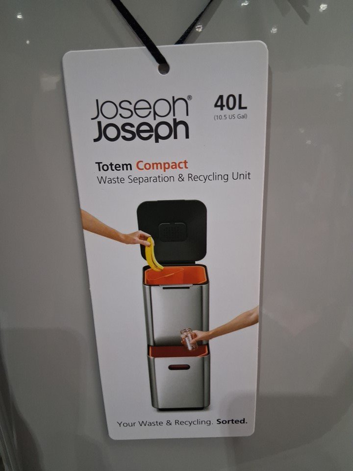 JOSEPH JOSEPH TOTEM MAX KITCHEN TRASH CAN AND RECYCLE UNIT - 40L - Grey