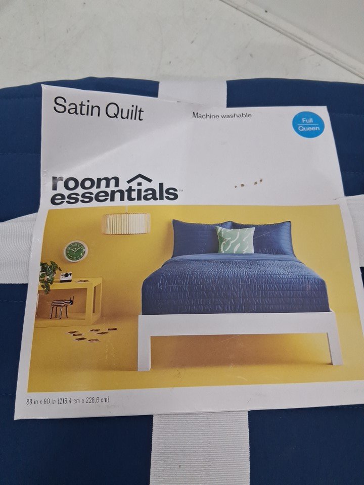 room essentials satin quilt set - 88'' x 90'', queen - dark navy blue