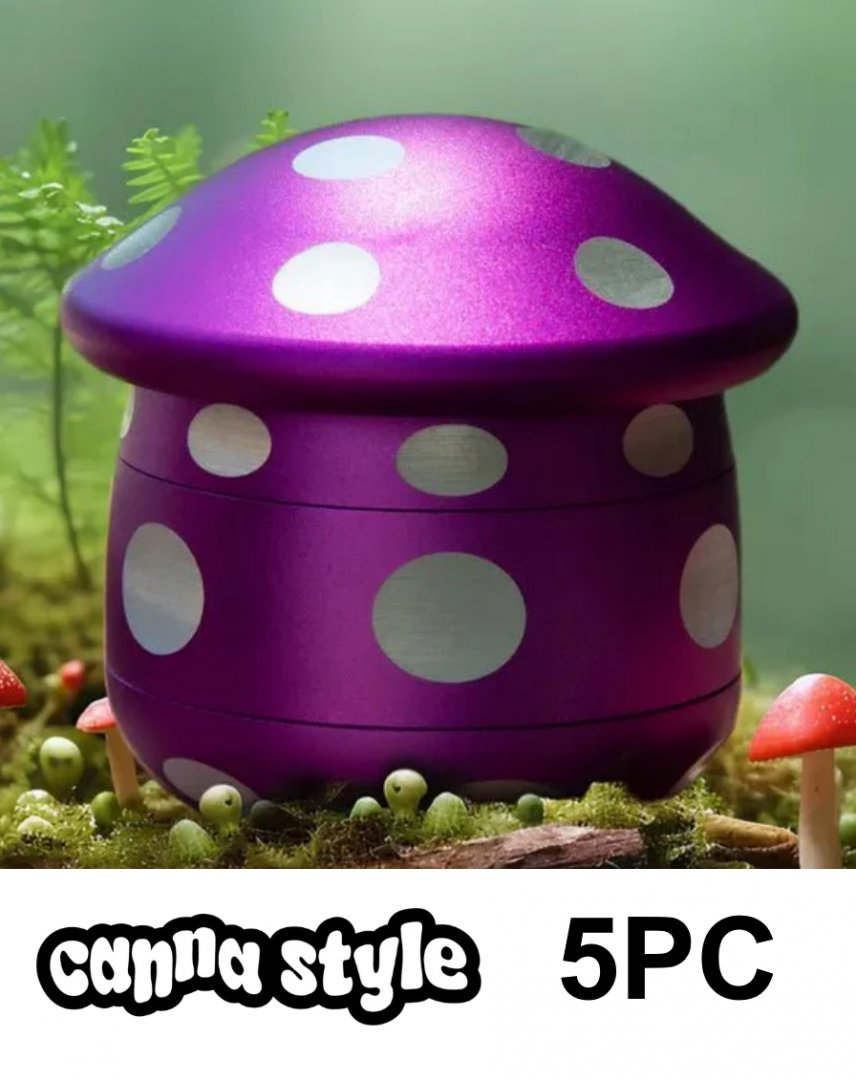 5PC CANNA STYLE 3D Colored Mushroom Solid Grinder - PURPLE