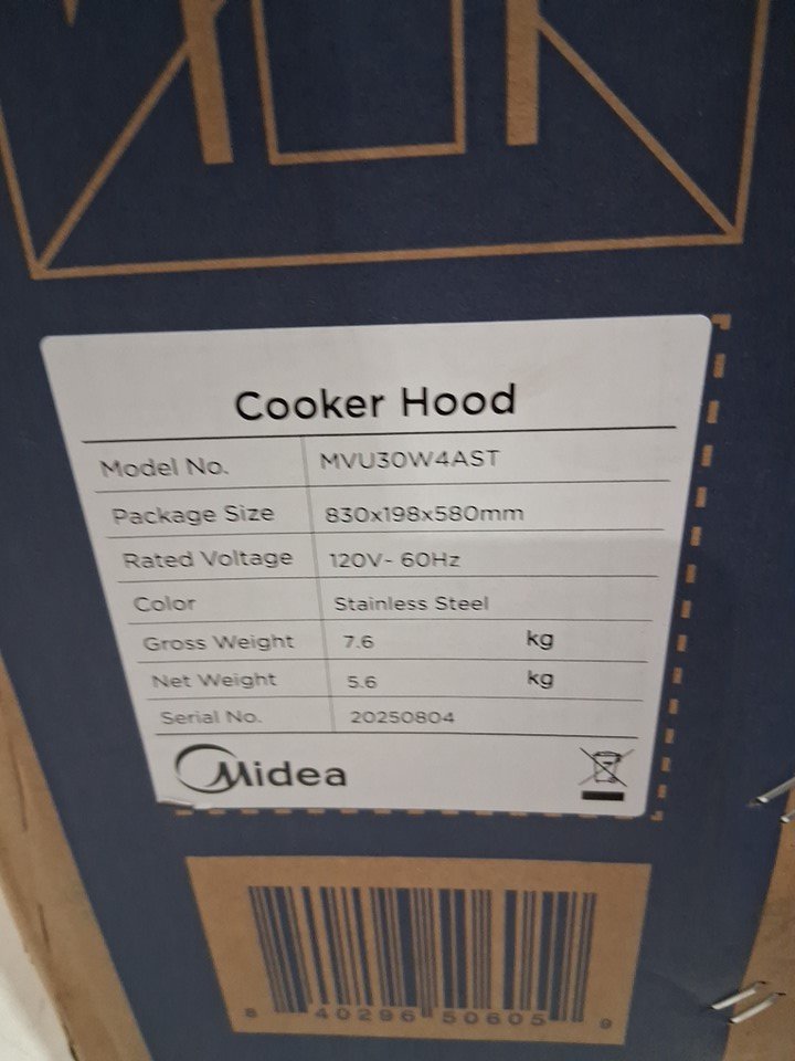 midea under cabinet convertible slim range hood - 30" - 60hz - 120v - 65dpa - silver (model: MVU30W4AST)