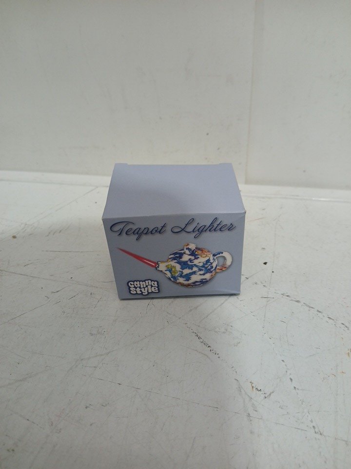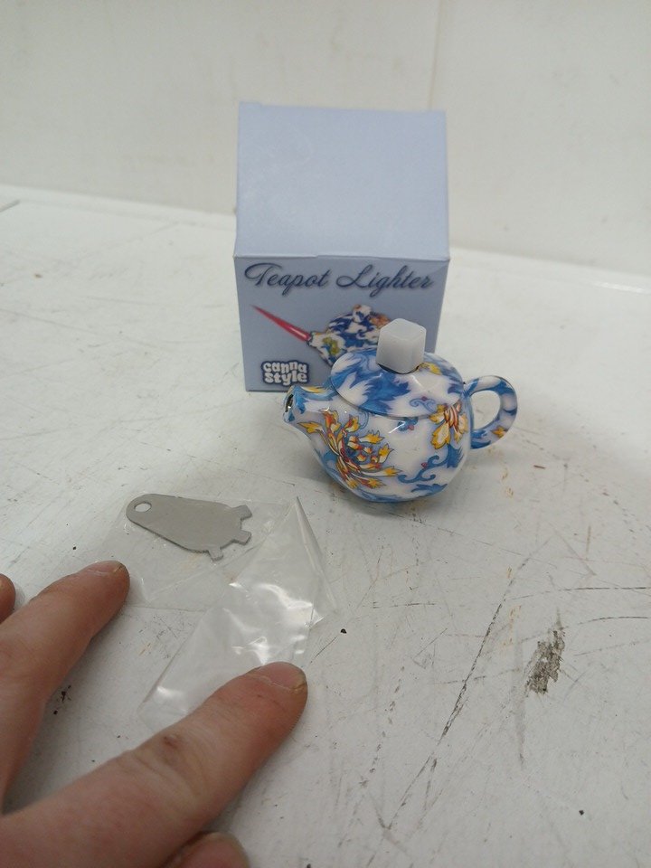 canna style mini TEAPOT LIGHTER - blue floral pattern