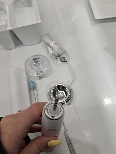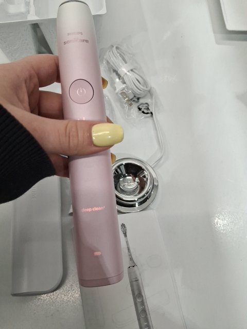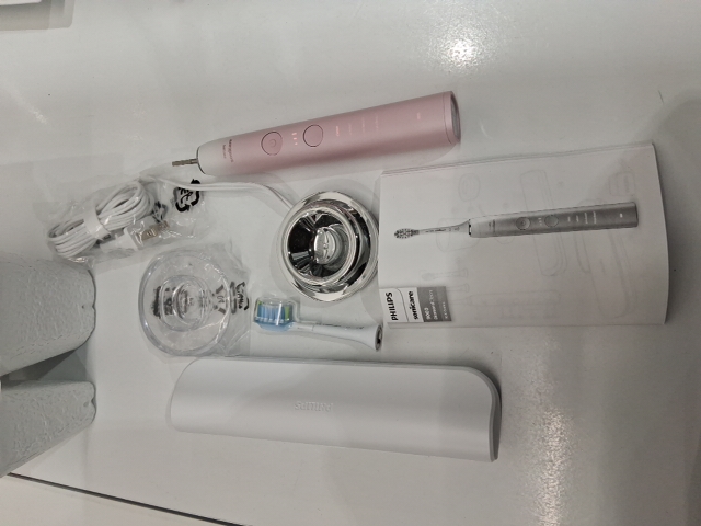 There is a bit of toothpaste residue on the brush handle. We recommend doing a personal clean of this item before use. Tested for power.