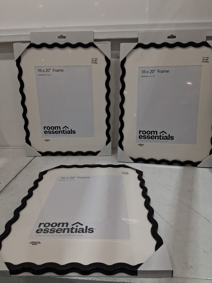 3 ROOM ESSENTIALS wavy matted wall hanging picture photo frame - 16" x 20" frame / 11" x 14" photo with mat - black
