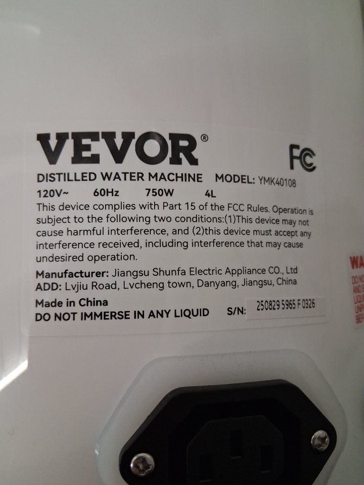VEVOR WATER DISTILLER WITH PLASTIC CONTAINER - DISTILLED WATER MAKER FOR HOME - 4L - 750W - WHITE - (MODEL: YMK40108)
