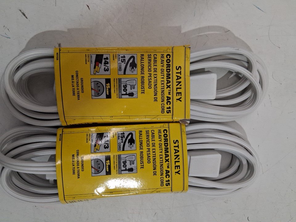 2 Stanley Cordmax AC-15 Heavy-Duty Extension Cord - 15FT(EACH) - White