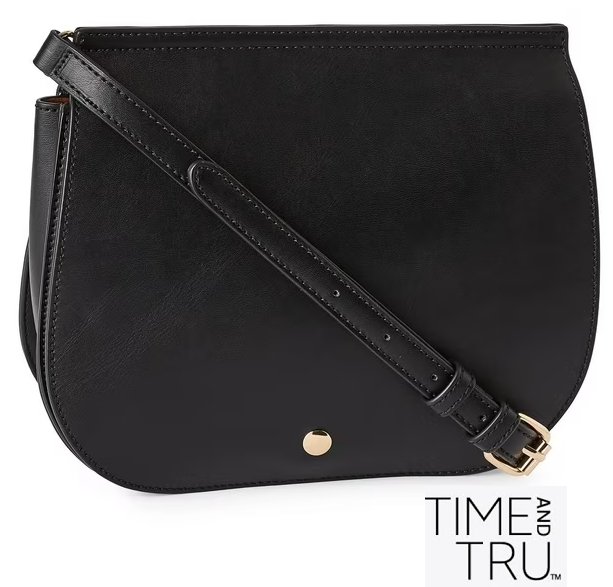 Women's Time and Tru Faux Leather Crossbody Bag - 9" x 7" - Black