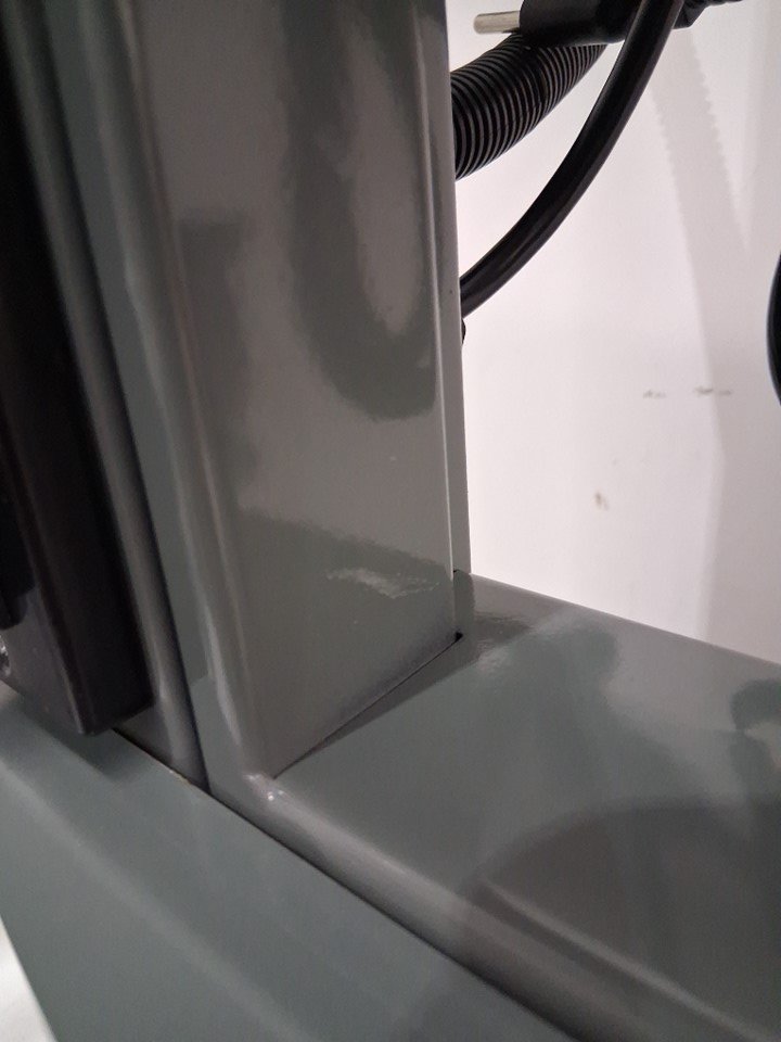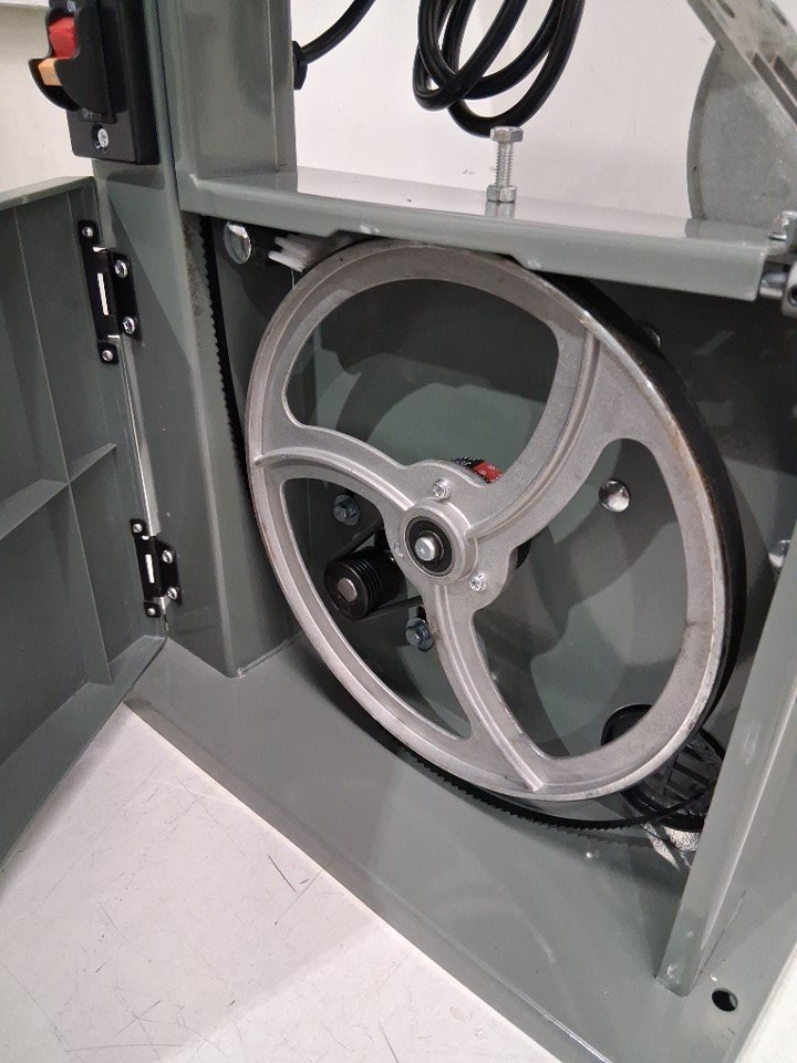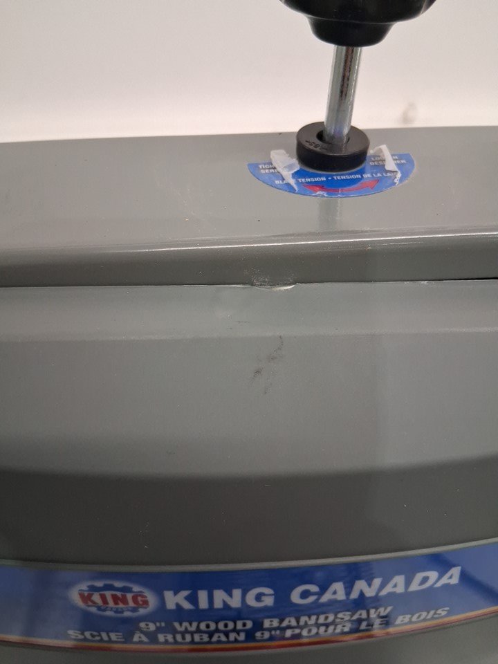 There are a couple scuff marks on the bandsaw from shipping, and the lightbulb also broke during shipping and will need to be replaced. Tested for basic power.