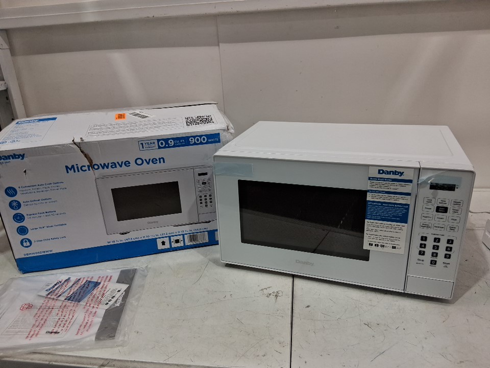 danby countertop microwave oven with locking door - 0.9cu/ft - white (model: dbmw0921bww)