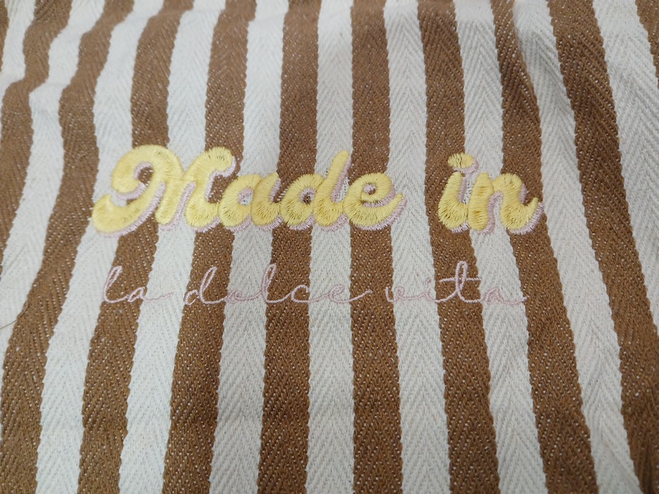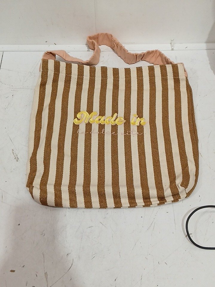 vintage striped canvas bag WITH ELASTIC STRAP "MADE IN LA DULCE VITA" LOGO - BEIGE STRIPED