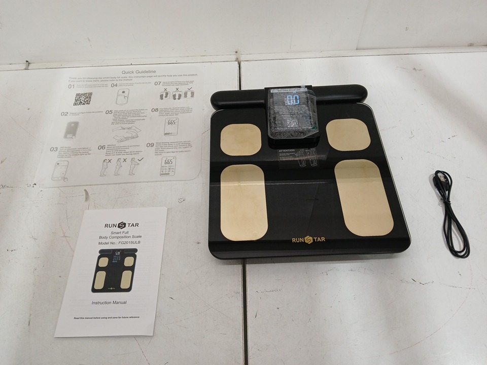 RunStar Scale for Body Weight and Fat Percentage, 8 Electrodes High Precision for BMI 28 Body Composition Measurement - app compatible - black/gold (model:fg2015ulb)