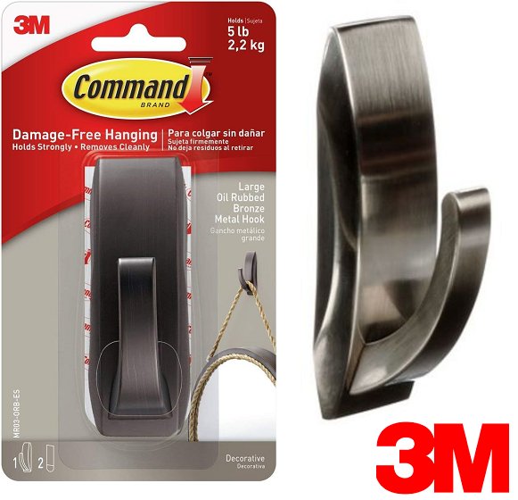 3m Command Modern Reflections Large Bath Hook - Oil Rubbed Bronze (Model: MR03-ORBB-EF)