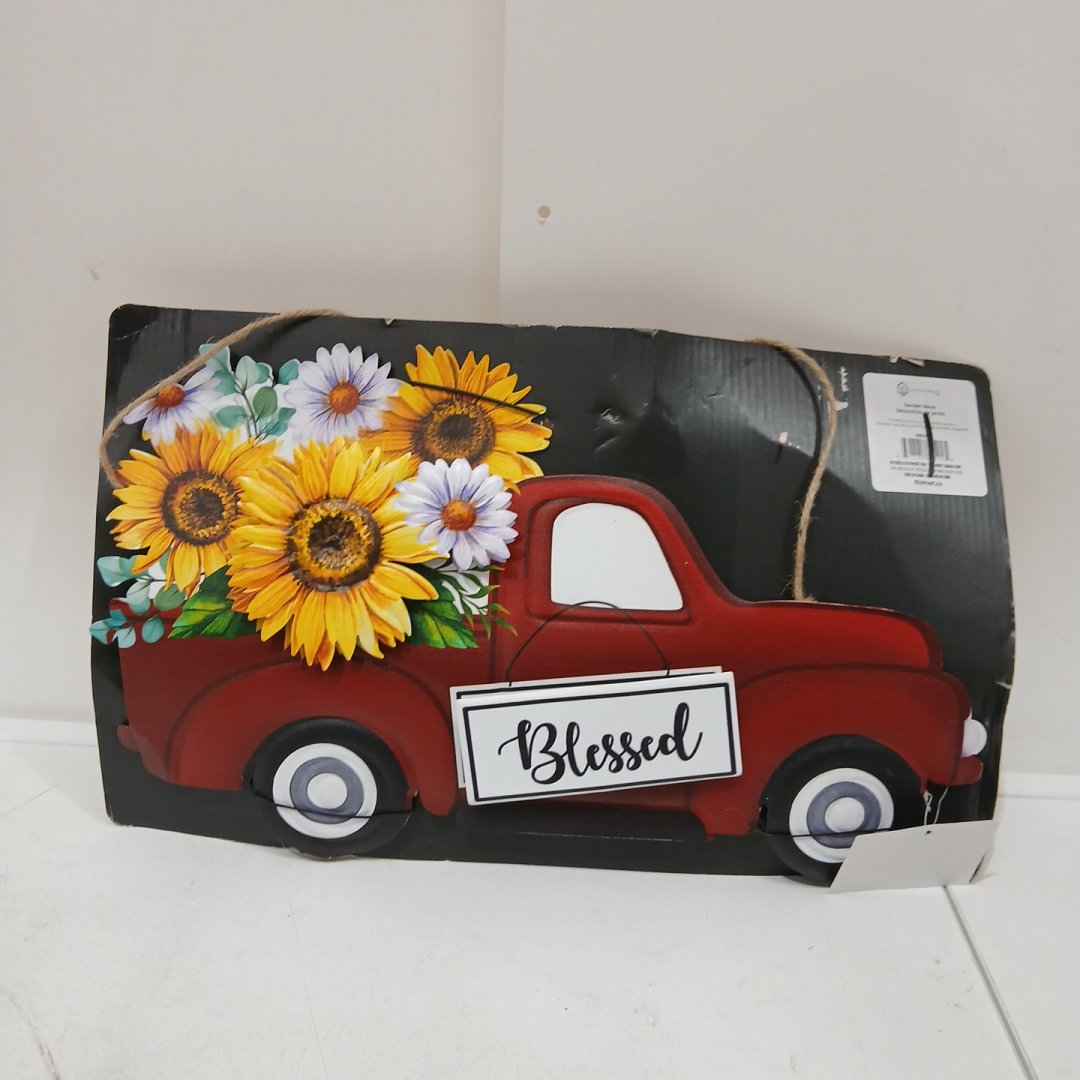 HOMETRENDS GARDEN DECOR - HANGING RED PICK UP TRUCK WITH FLOWERS, BLESSED