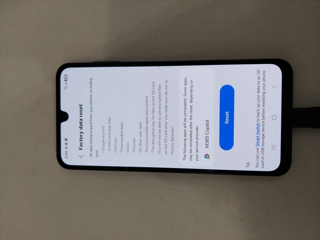 Item arrived with damage to the screen. there is a large crack on the front but nothing that appears to effect use. the item also has signs of minor wear on the back but nothing significant. tested for power and function before being reset.